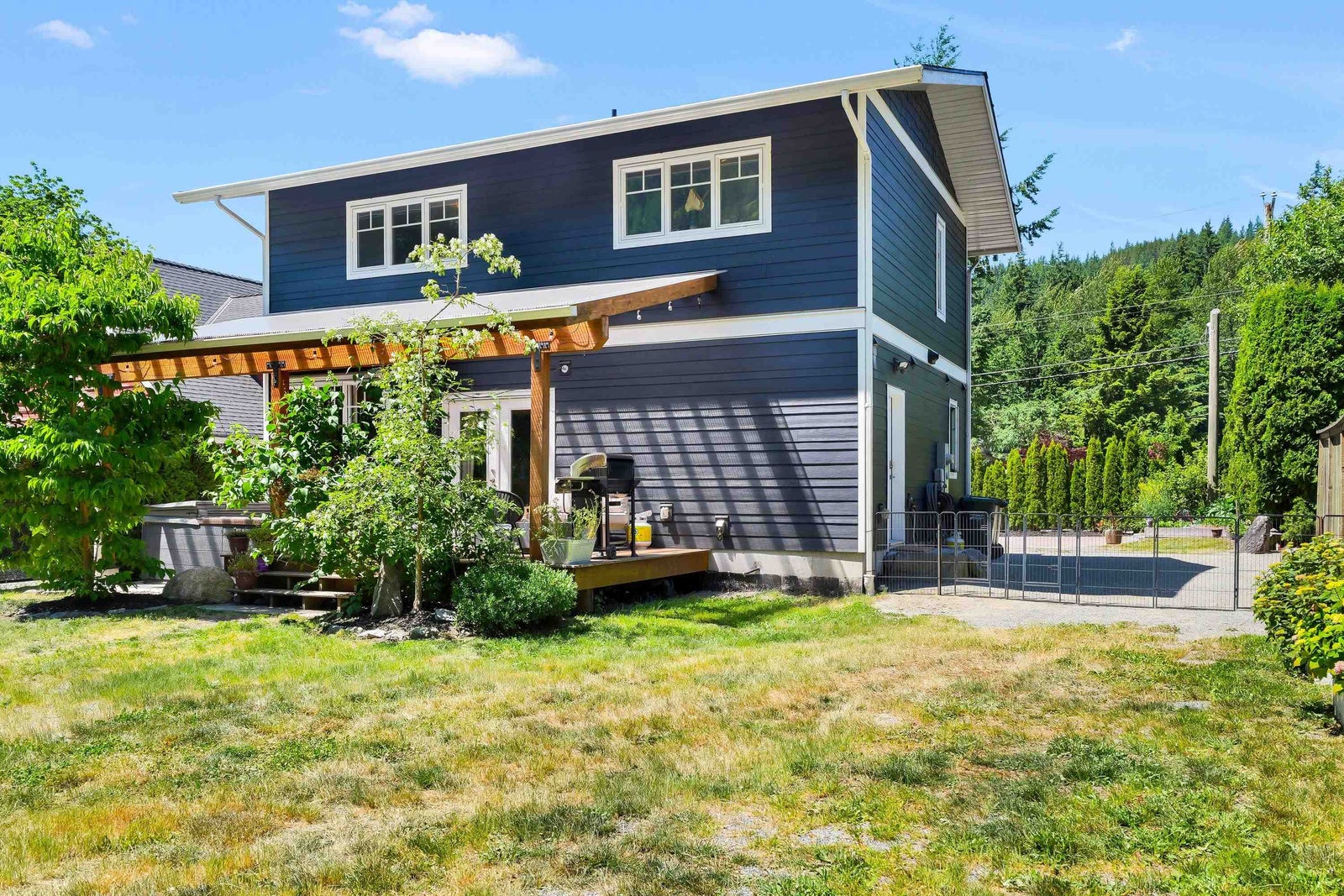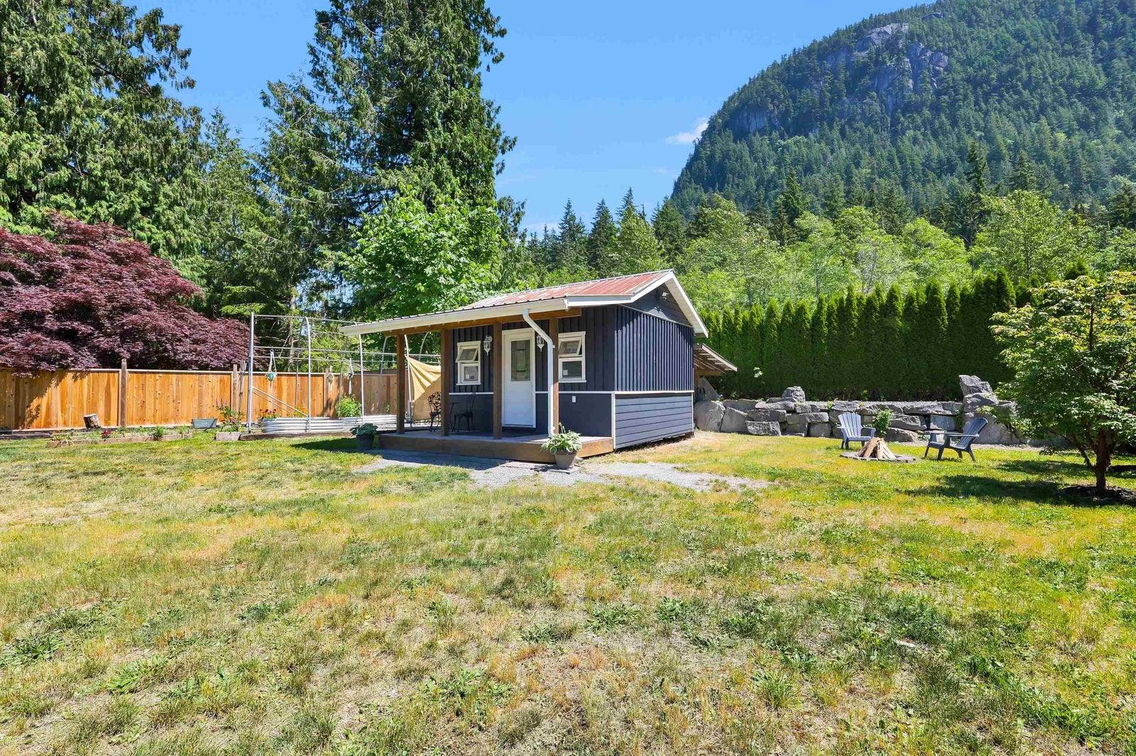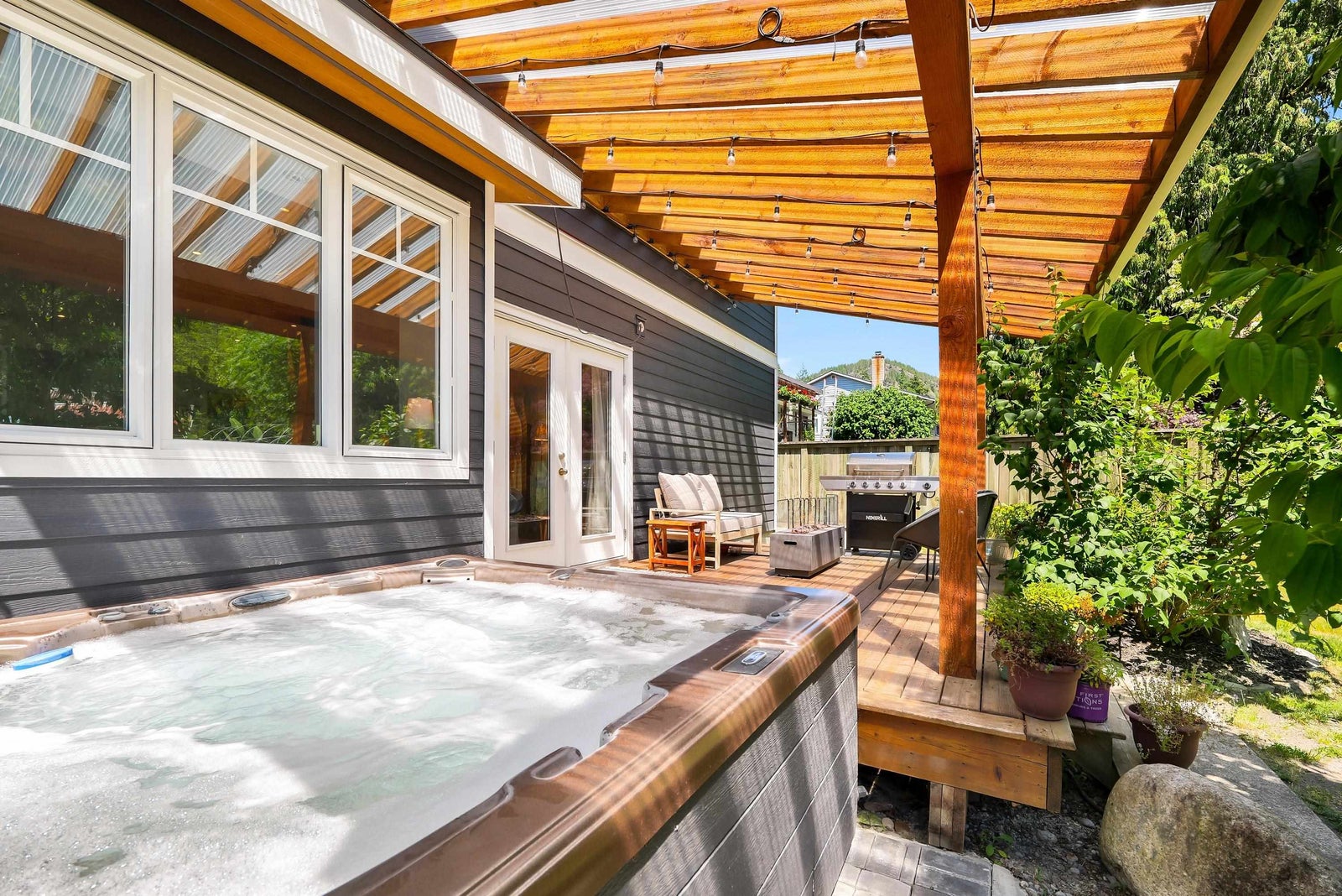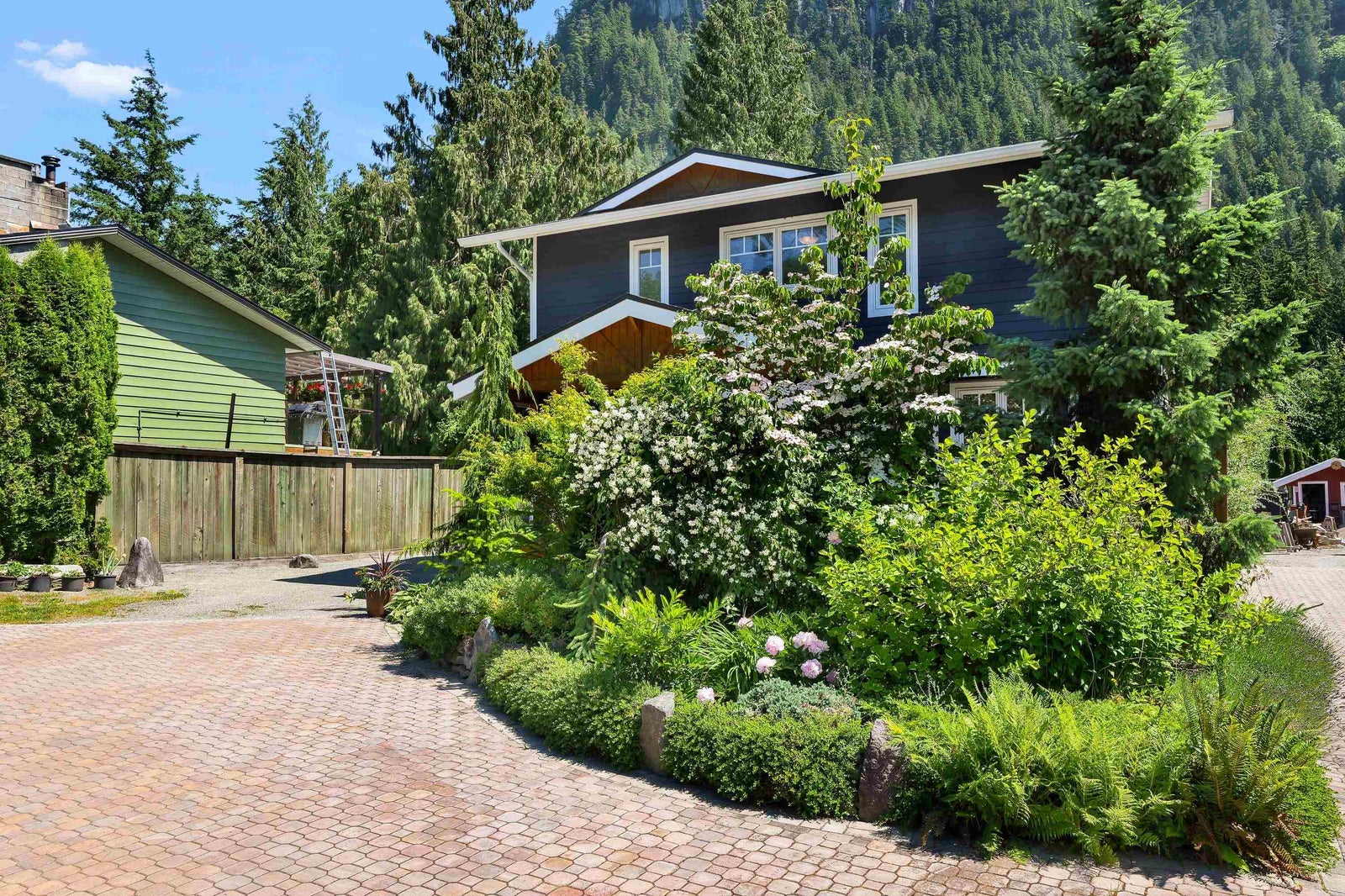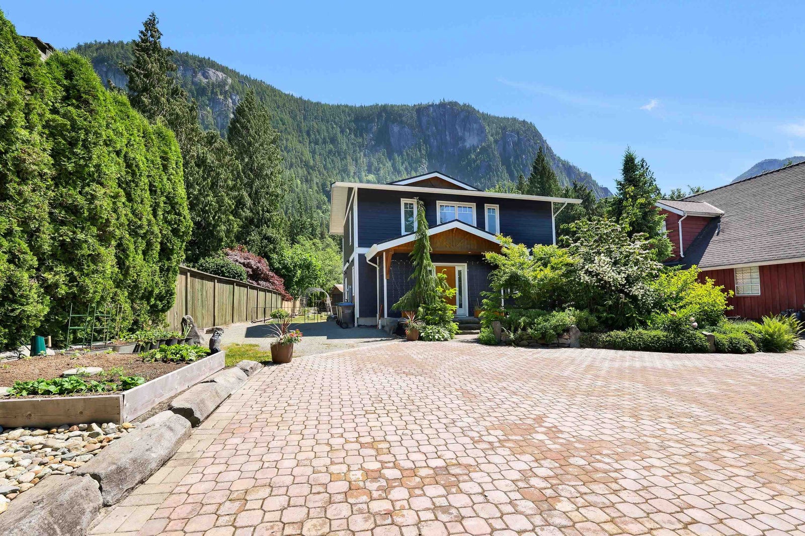 Welcome to a home that truly captures the essence of Squamish living. This thoughtfully designed home features 2 large bedrooms, both w/walk-in closets, and flex area upstairs currently used as an office, with potential to be converted into a 3rd bedroom. The primary suite has a roughed-in ensuite, currently configured as a nursery, offering flexibility for future customization. Situated on a very sunny, south-facing 13,000sqft lot that backs directly onto the Stawamus River dyke offering future carriage home potential, with lane access along the east side. Currently there is a larger heated, powered shed ideal for a home office/workshop/storage. Other features include: hot water on demand, Heated floors throughout the lower level, hot tub, and much more.