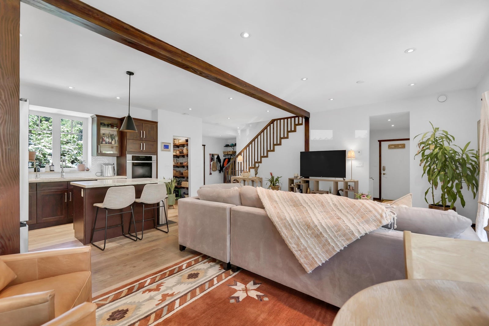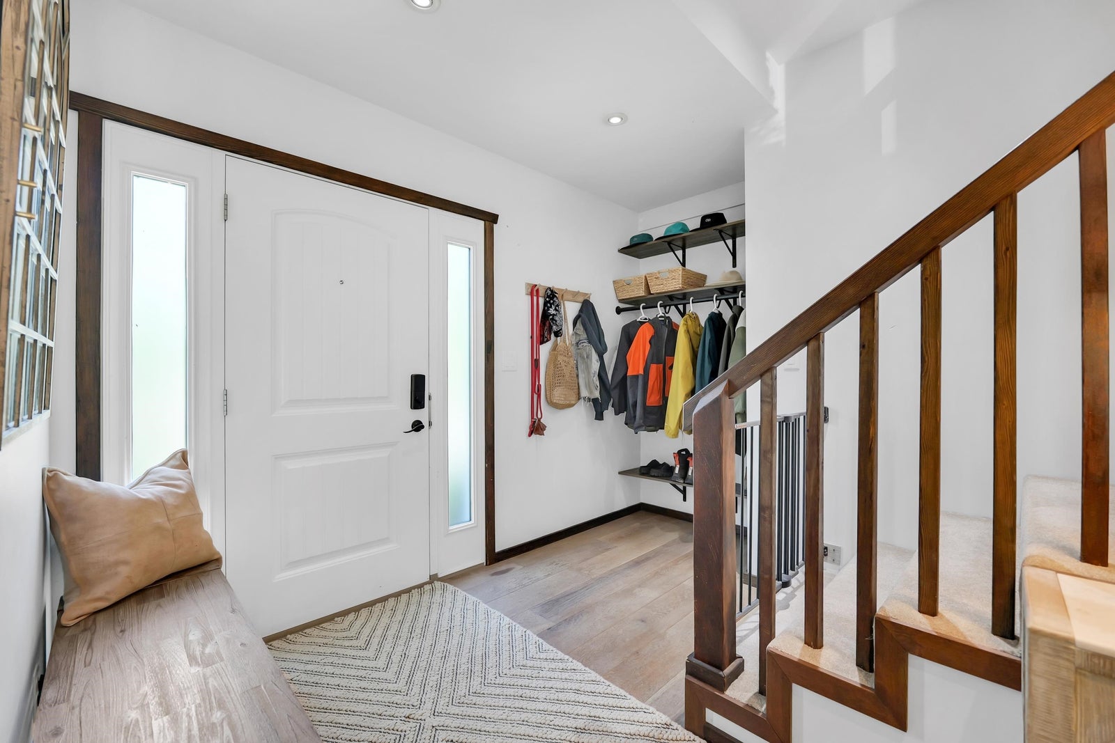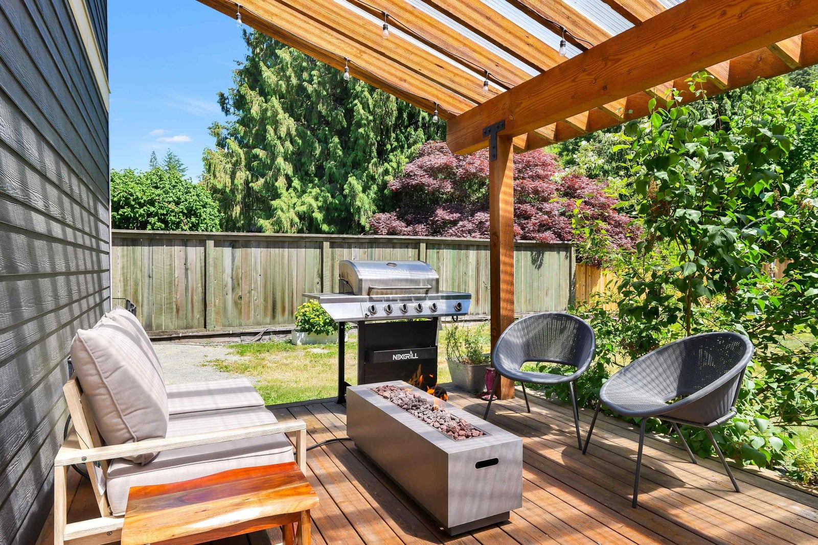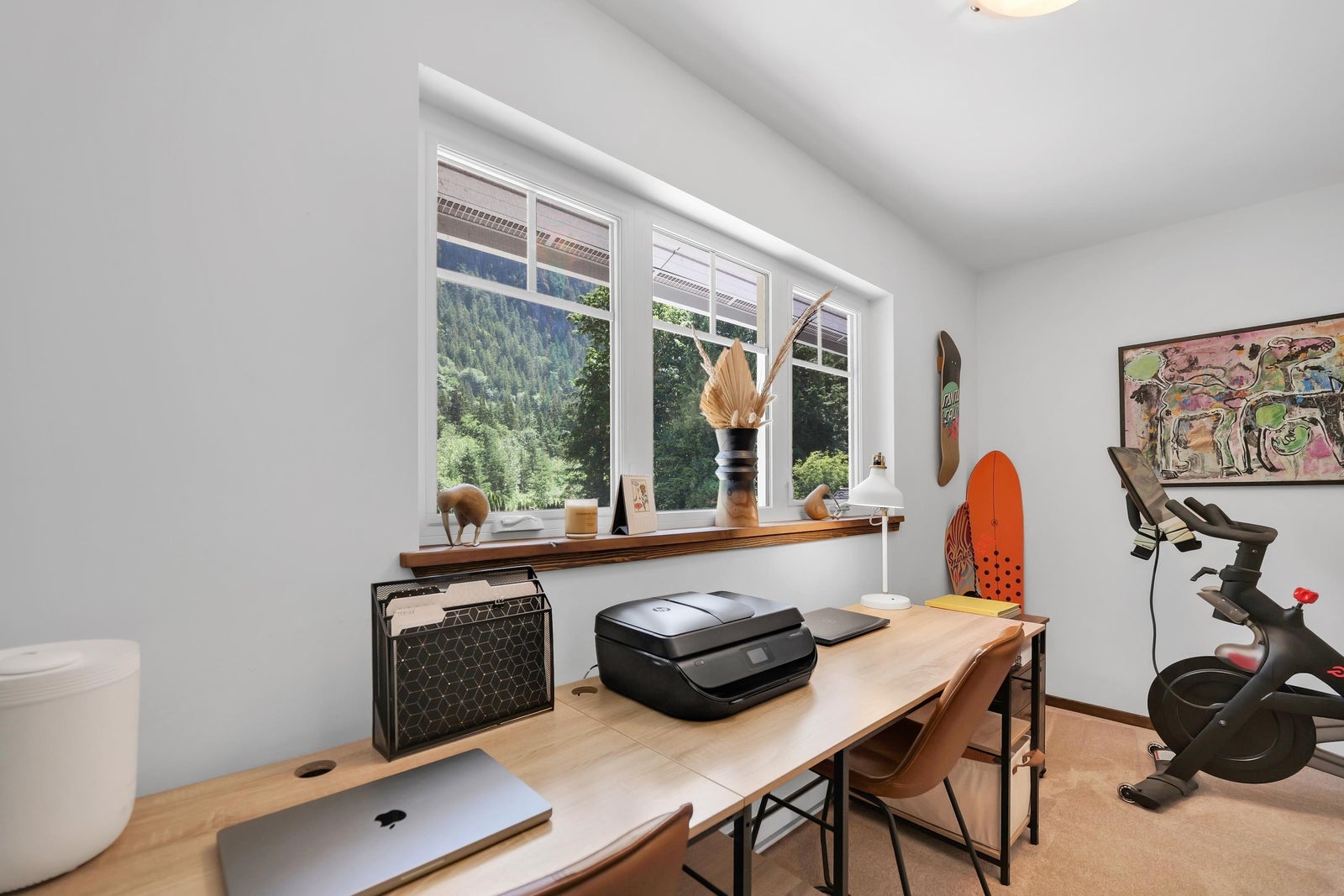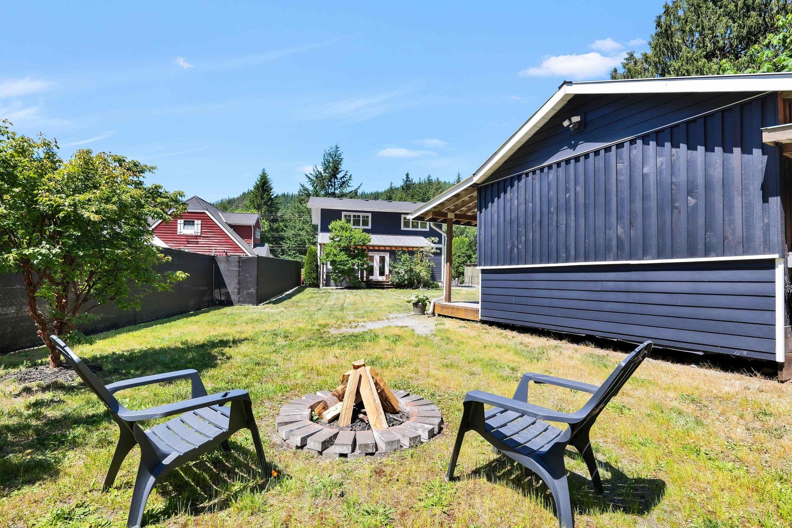 Welcome to a home that truly captures the essence of Squamish living. This thoughtfully designed home features 2 large bedrooms, both w/walk-in closets, and flex area upstairs currently used as an office, with potential to be converted into a 3rd bedroom. The primary suite has a roughed-in ensuite, currently configured as a nursery, offering flexibility for future customization. Situated on a very sunny, south-facing 13,000sqft lot that backs directly onto the Stawamus River dyke offering future carriage home potential, with lane access along the east side. Currently there is a larger heated, powered shed ideal for a home office/workshop/storage. Other features include: hot water on demand, Heated floors throughout the lower level, hot tub, and much more.