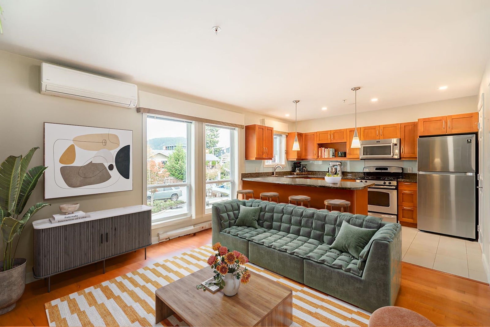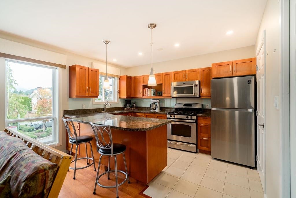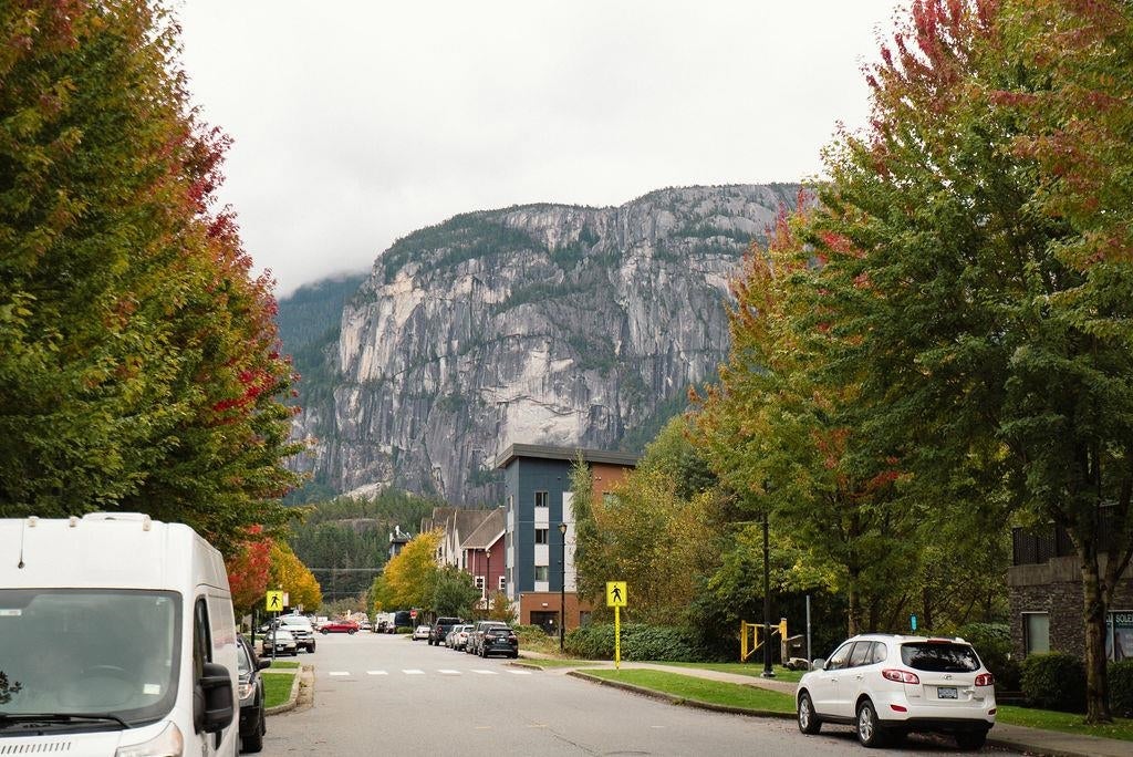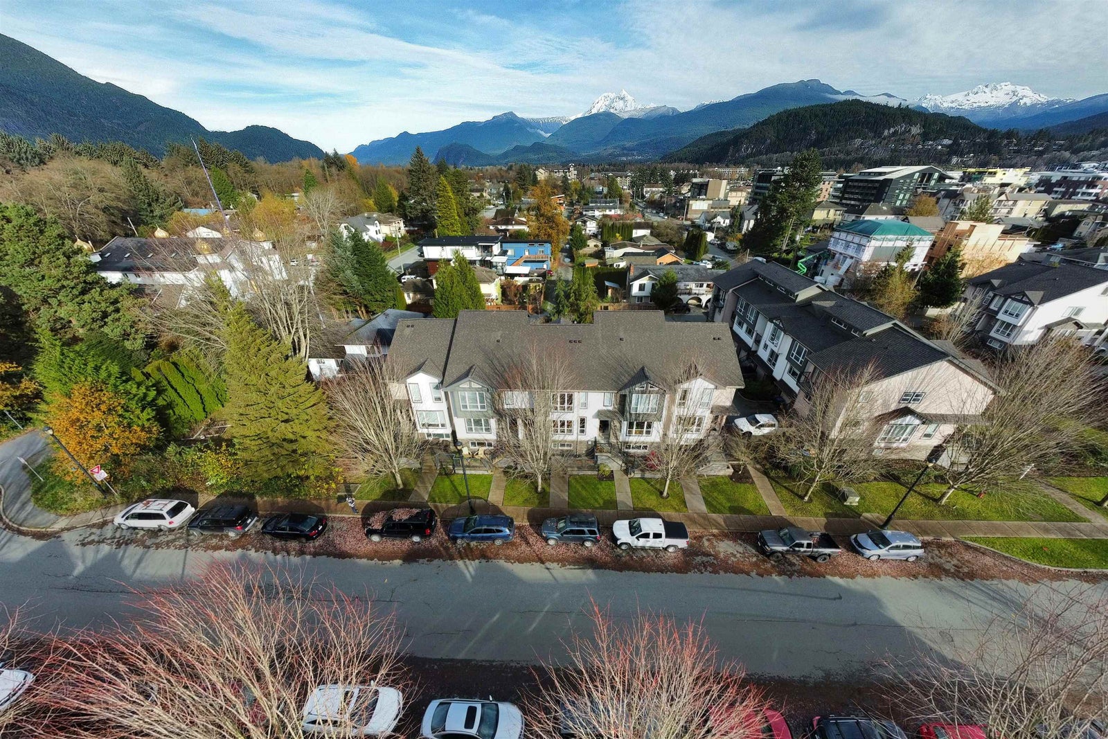 Welcome to Skye townhomes tucked away by the estuary in beautiful Downtown Squamish. This spacious 3-bed, 2.5-bath former show home offers one of the best layouts in the complex with nearly 1,900sq.ft of living space. Some of the features include hardwood floors, granite counters, S/S appliances, a gas fireplace and $25k heat pump upgrade keeping utility bills low. Enjoy open-concept living with a private patio and stunning views of The Chief and Atwell Peak. Upstairs offers 3 generous bedrooms, including a large primary with double closets and spa-like ensuite. Flex space ideal for home office or gym. Double tandem garage plus outdoor parking spot. Steps to estuary trails, shops, and cafés.
