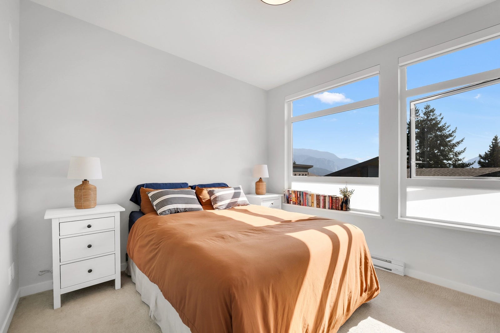 Welcome to Highline, one of Squamish’s newest and most desirable townhome communities by Polygon. This bright and modern 3-bed/3-bath home delivers everything you’re looking for, starting with an open-concept main floor and a sleek kitchen equipped with stone countertops, s/s appliances, and a large island with bar perfect for casual meals and entertaining. A convenient office nook and main-level powder room make work-from-home days a breeze. Upstairs, you’ll find 3 spacious bedrooms, including a fantastic primary suite with a walk-in closet and a spa-inspired ensuite. Step outside to your patio and fenced backyard-ideal for pets (2 dogs ok), BBQs, and mountain views + a side-by-side double garage, direct trail access. BONUS: 6 months strata fees prepaid!